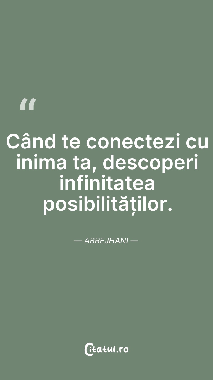 Când te conectezi cu inima ta, descoperi infi ... Citește tot citatul >