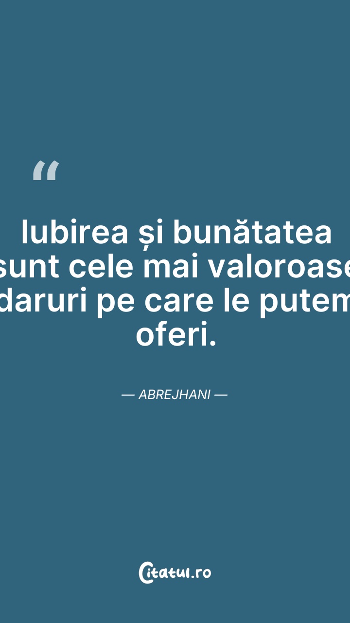 Iubirea și bunătatea sunt cele mai valoroase ... Citește tot citatul >