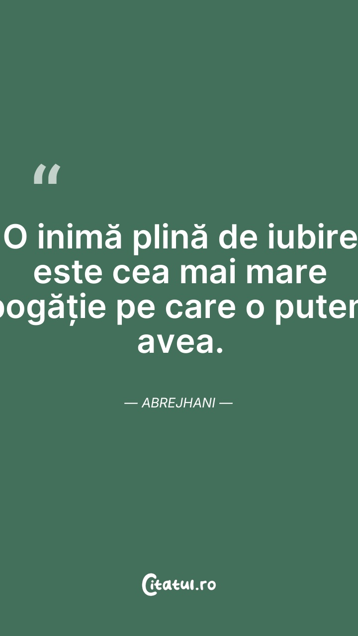 O inimă plină de iubire este cea mai mare bog ... Citește tot citatul >