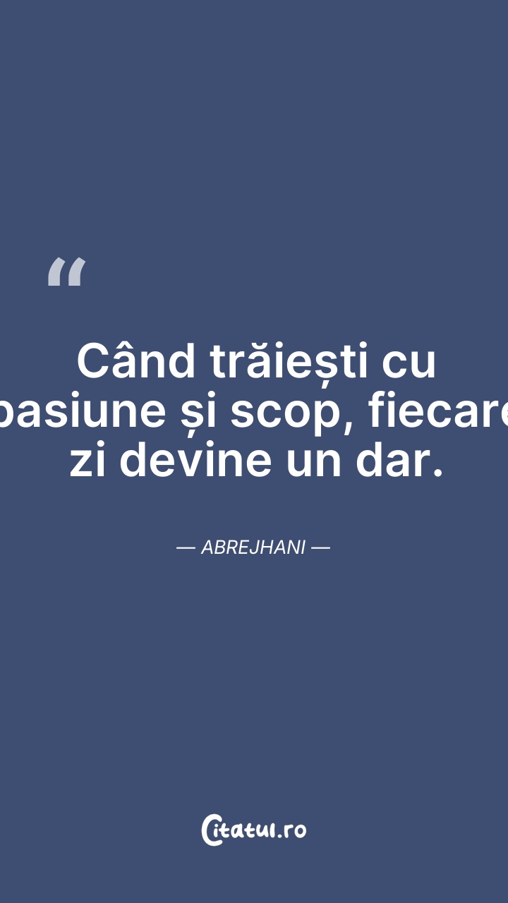 Când trăiești cu pasiune și scop, fiecare zi ... Citește tot citatul >
