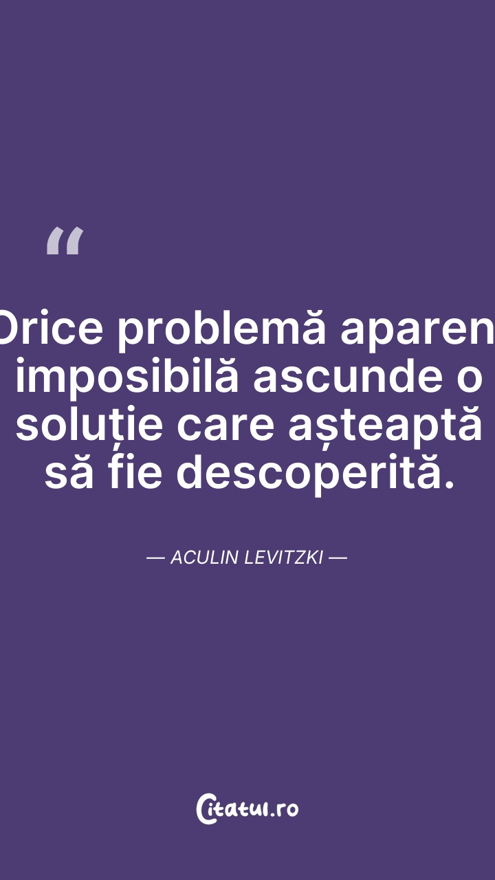 Orice problemă aparent imposibilă ascunde o s ... Citește tot citatul >