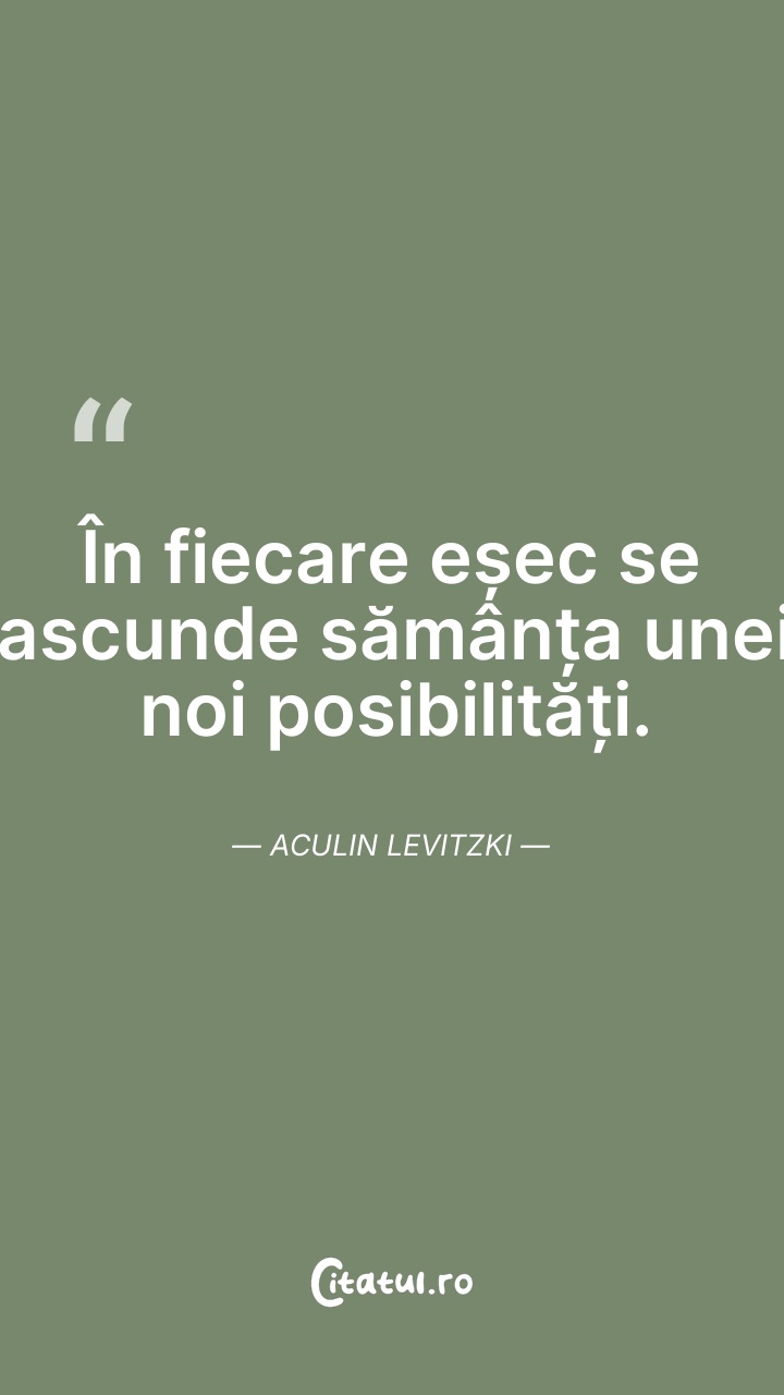 În fiecare eșec se ascunde sămânța unei noi p ... Citește tot citatul >