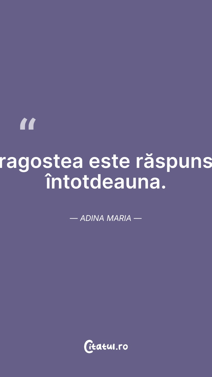 Dragostea este răspunsul întotdeauna. Adina M ... Citește tot citatul >