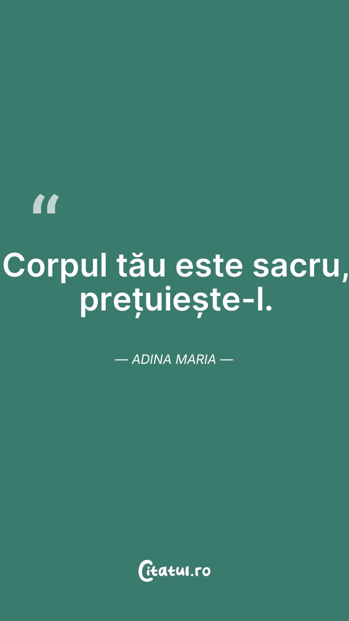 Corpul tău este sacru, prețuiește-l. Adina Ma ... Citește tot citatul >