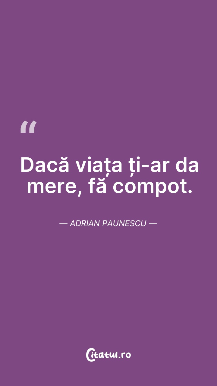 Dacă viața ți-ar da mere, fă compot. Adrian P ... Citește tot citatul >