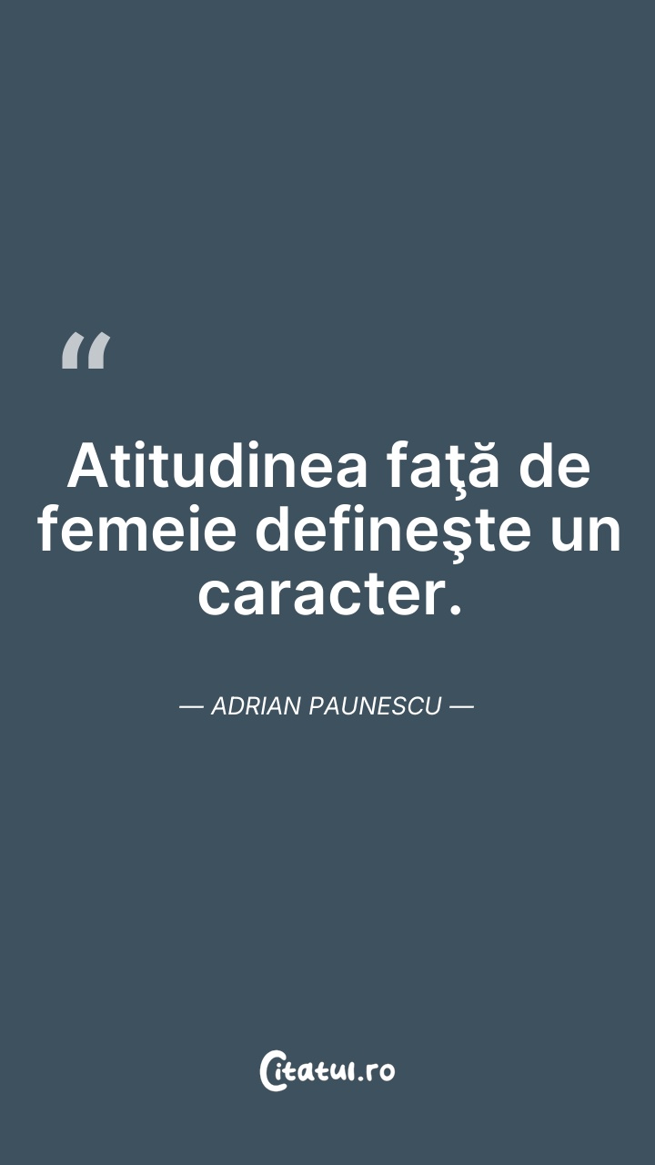 Atitudinea faţă de femeie defineşte un caract ... Citește tot citatul >