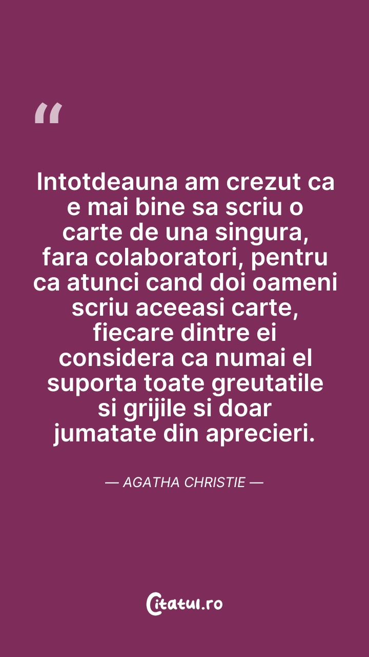 Agatha Mary Clarissa, Lady Mallowan, DBE, cunoscută în general ca Agatha Christie, a fost o scriitoare engleză de romane, povestiri scurte și piese de teatru polițiste. A scris și romane de dragoste sub pseudonimul Mary Westmacott, dar acestea sunt mai puțin cunoscute, nebucurându-se de același succes la public. Operele sale, în principal cele ce au ca personaje principale pe Hercule Poirot sau Miss Jane Marple, au făcut ca Agatha Christie să fie numită „Regina Crimei”, ea fiind considerată ca unul dintre cei mai importanți și inovativi autori ai genului.