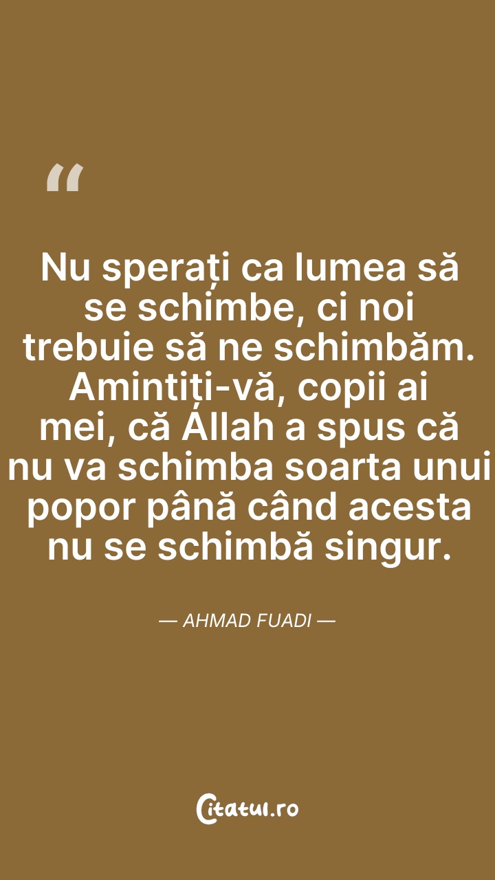 Nu sperați ca lumea să se schimbe, ci noi tre ... Citește tot citatul >