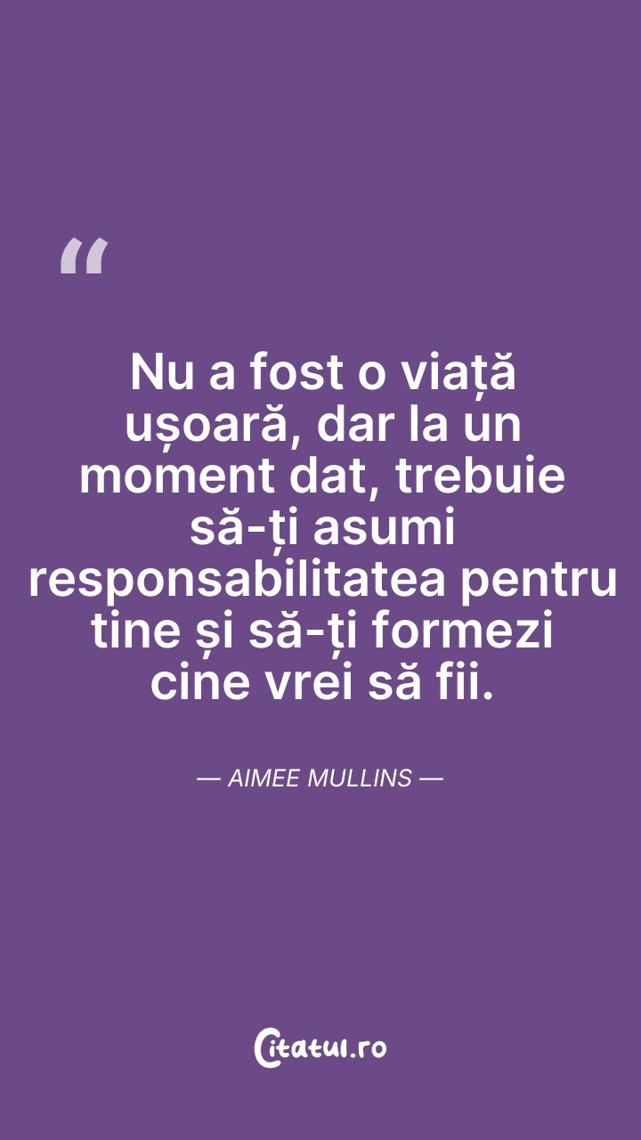 Nu a fost o viață ușoară, dar la un moment da ... Citește tot citatul >