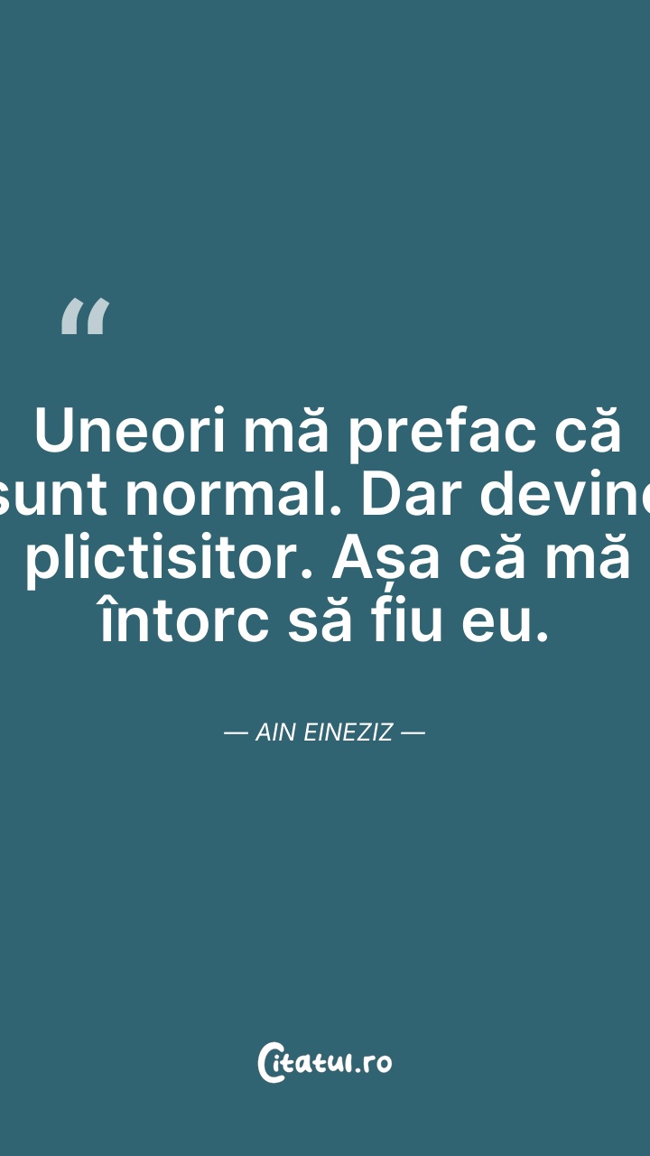 Uneori mă prefac că sunt normal. Dar devine p ... Citește tot citatul >