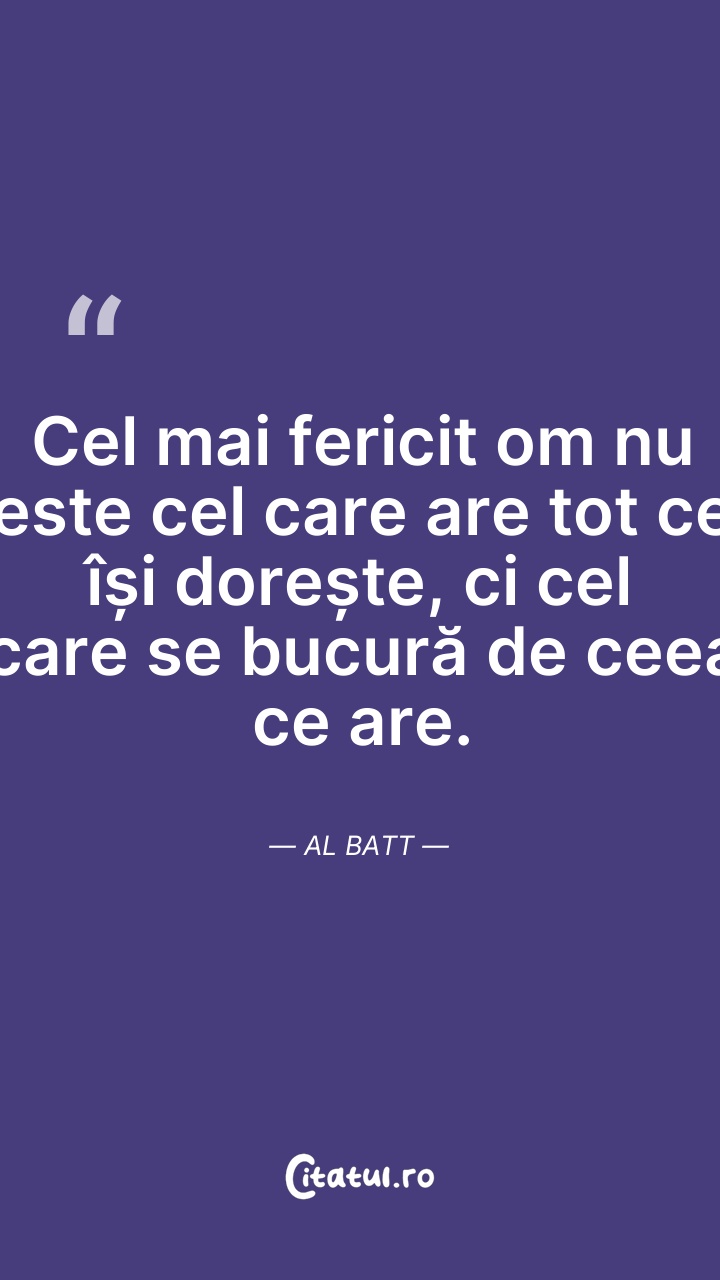 Cel mai fericit om nu este cel care are tot c ... Citește tot citatul >