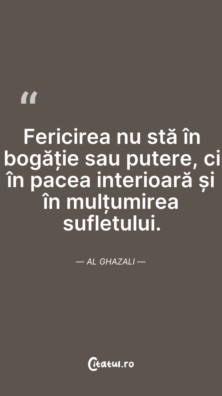 Fericirea nu stă în bogăție sau putere, ci în ... Citește tot citatul >