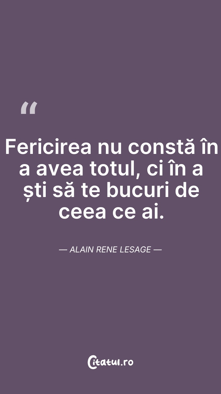 Fericirea nu constă în a avea totul, ci în a ... Citește tot citatul >