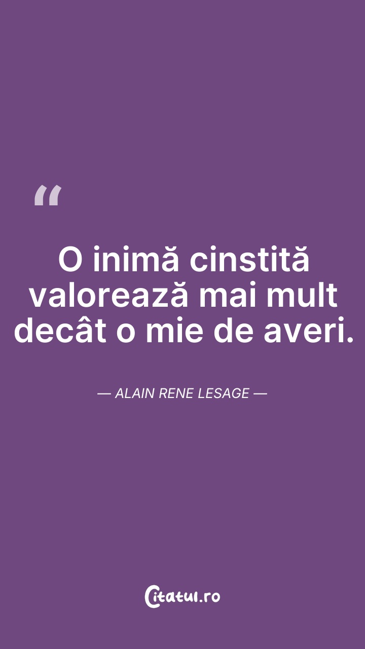 O inimă cinstită valorează mai mult decât o m ... Citește tot citatul >