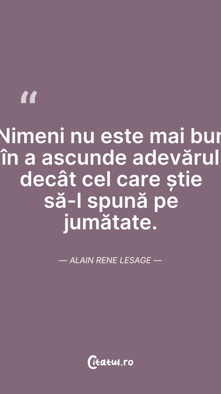 Nimeni nu este mai bun în a ascunde adevărul ... Citește tot citatul >