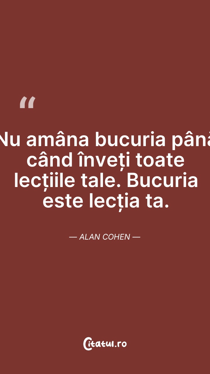 Nu amâna bucuria până când înveți toate lecți ... Citește tot citatul >