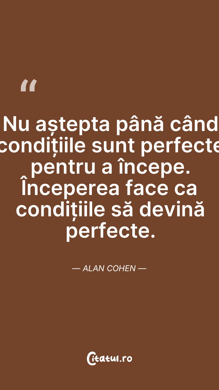 Nu aștepta până când condițiile sunt perfecte ... Citește tot citatul >