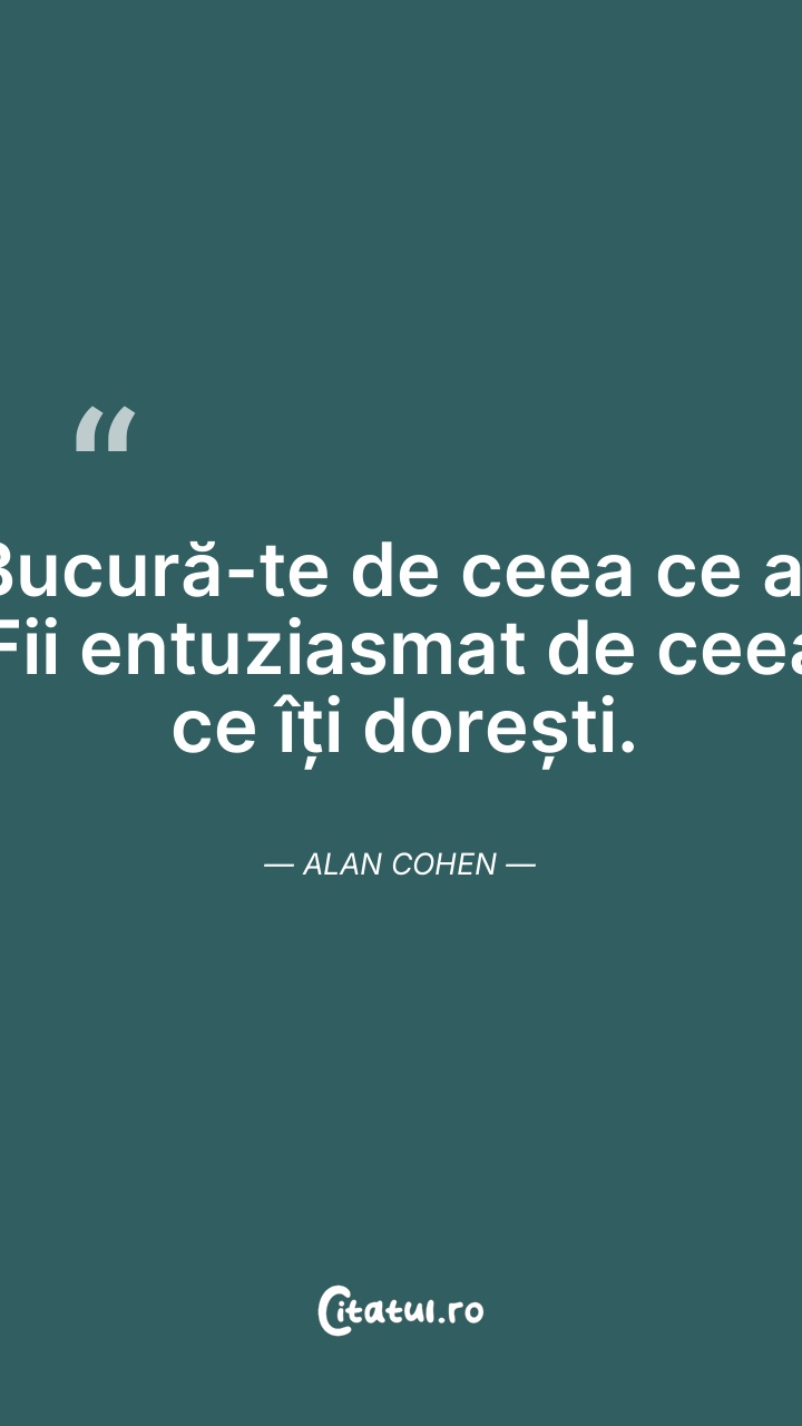 Bucură-te de ceea ce ai. Fii entuziasmat de c ... Citește tot citatul >