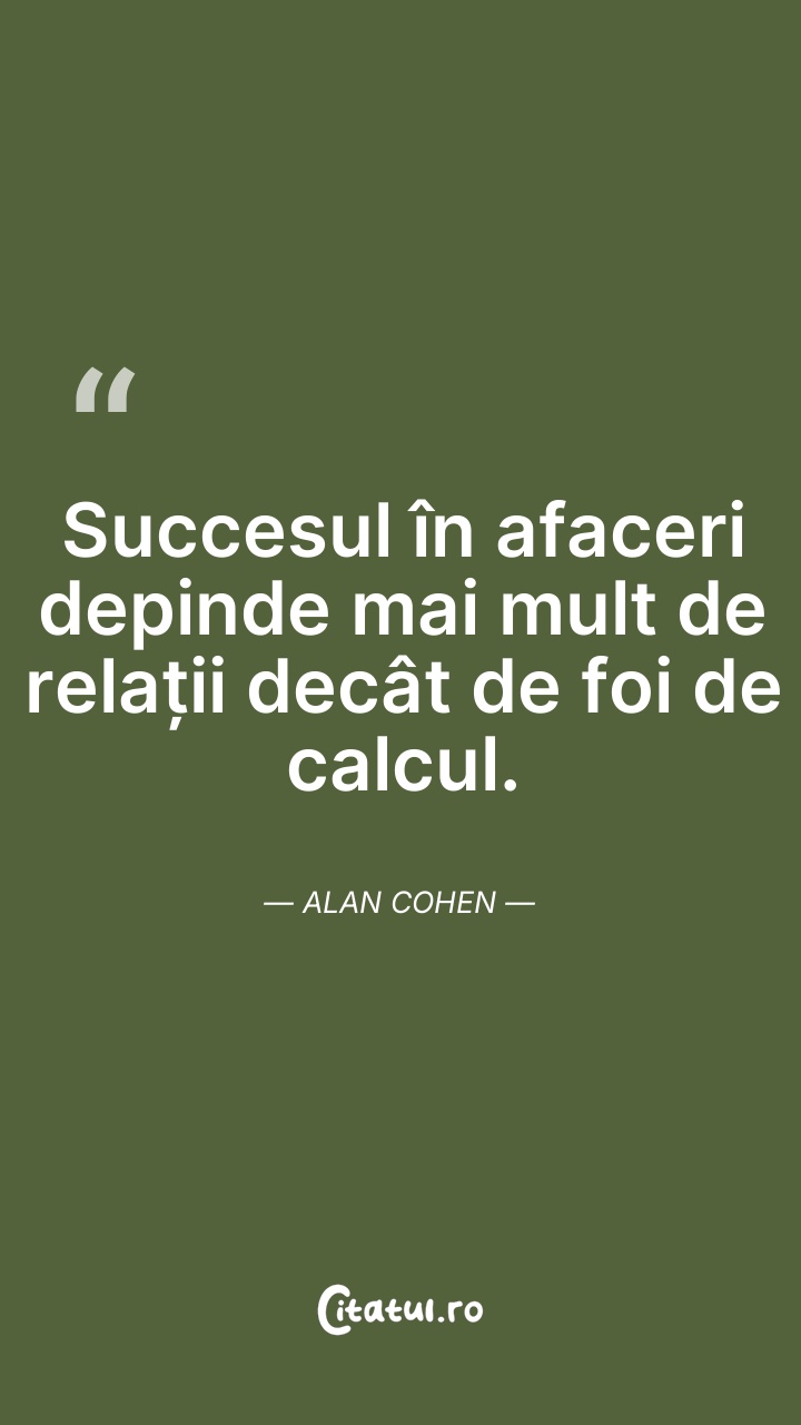 Succesul în afaceri depinde mai mult de relaț ... Citește tot citatul >