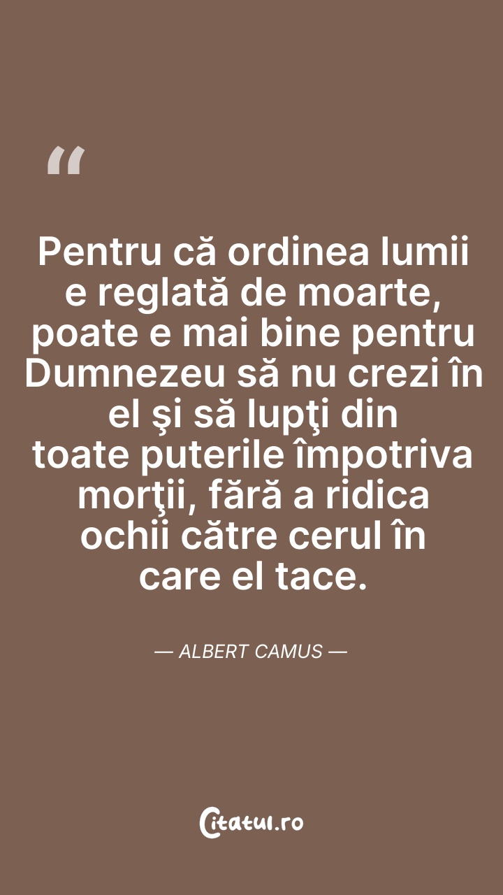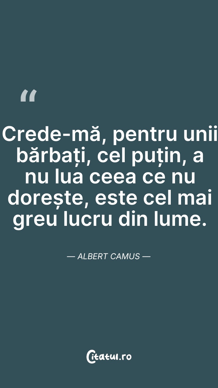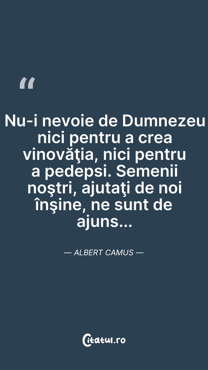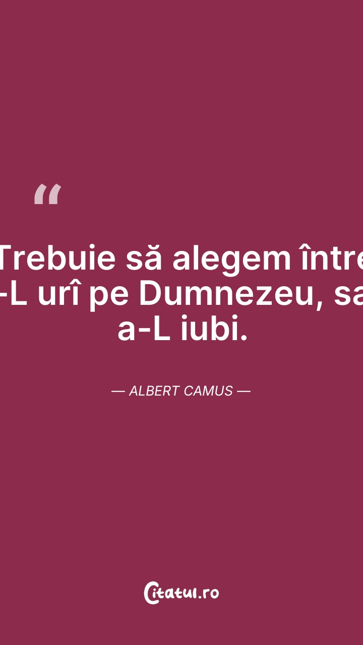 Albert Camus a fost un romancier, dramaturg și filozof algerian, francez, reprezentant al existențialismului. În anul 1957 a primit Premiul Nobel pentru Literatură.