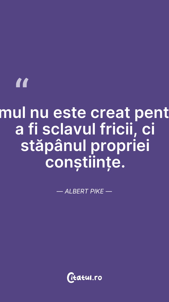 Omul nu este creat pentru a fi sclavul fricii ... Citește tot citatul >