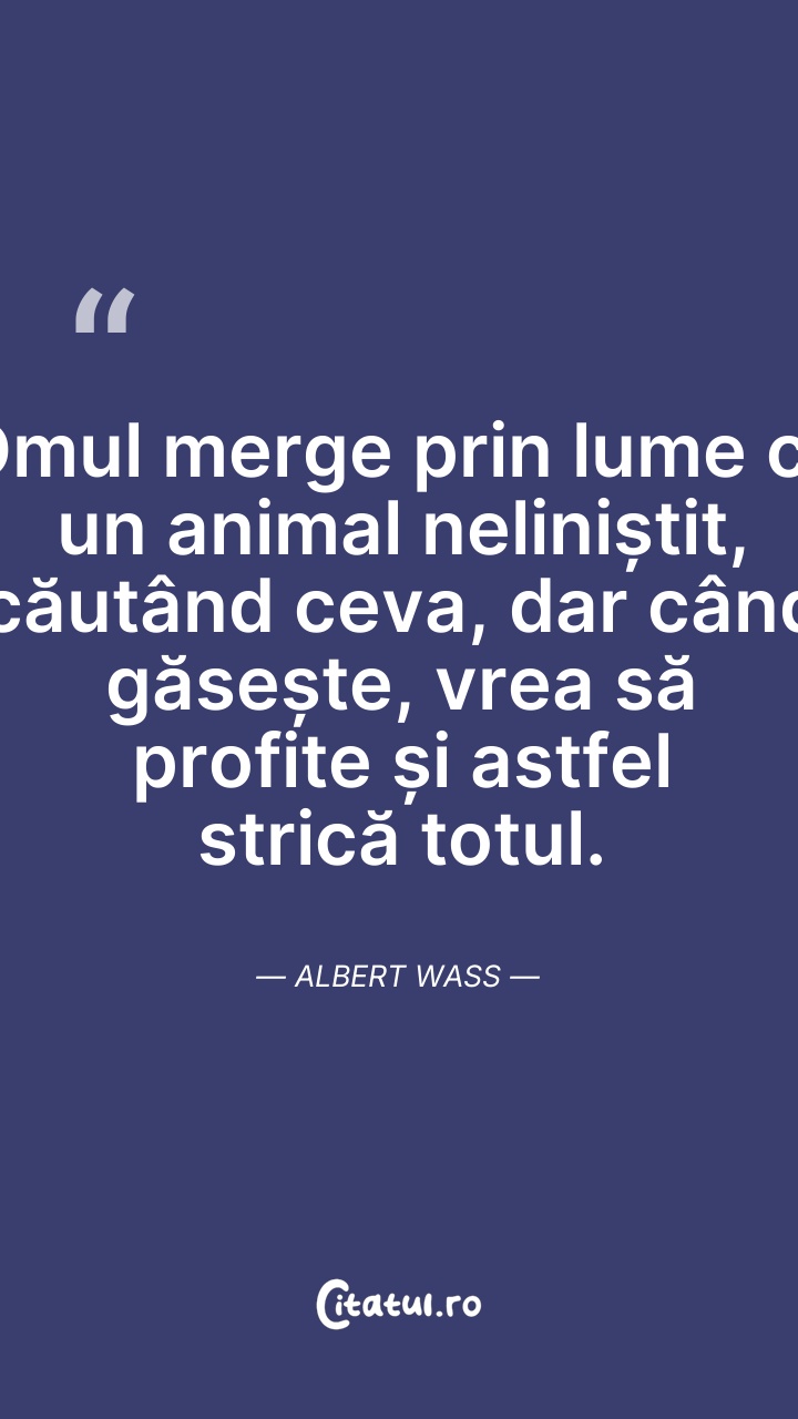 Omul merge prin lume ca un animal neliniștit, ... Citește tot citatul >