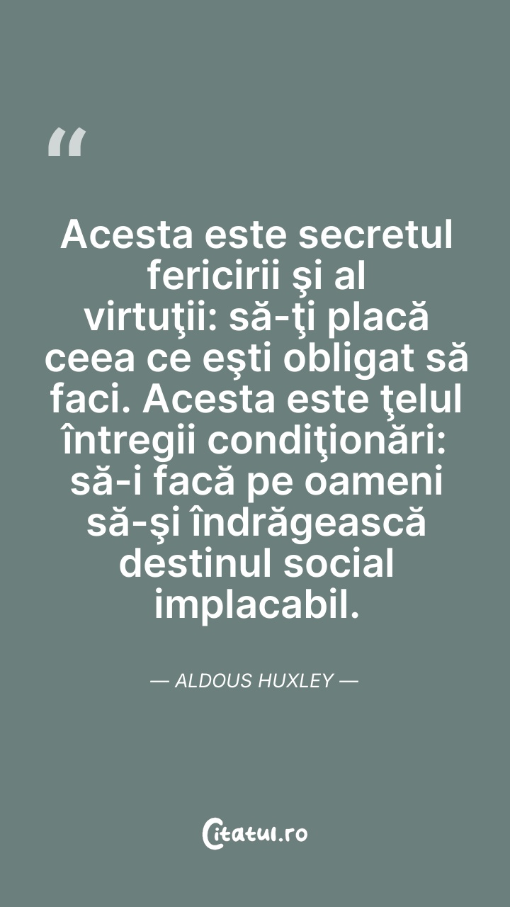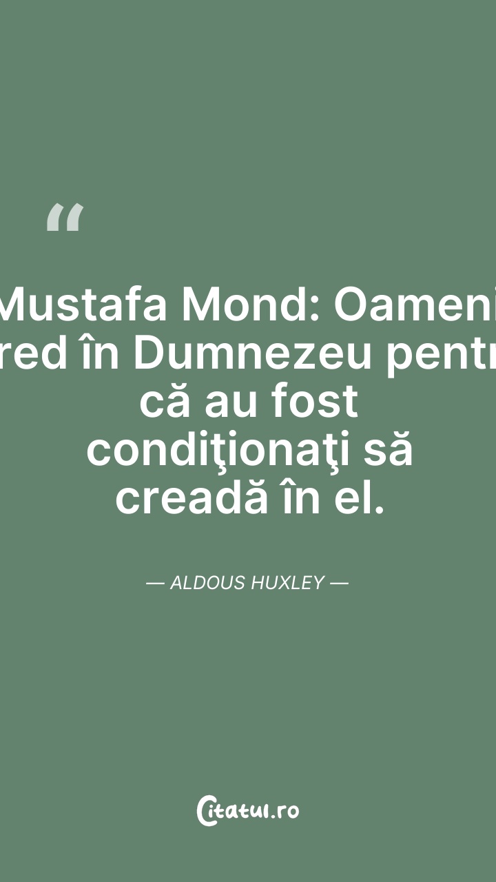 Aldous Leonard Huxley a fost un scriitor britanic care a emigrat în Statele Unite. A fost un membru al faimoasei familii Huxley care a dat un mare număr de minți științifice briliante.