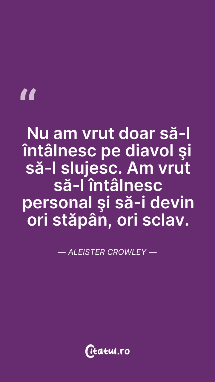 Aleister Crowley, născut Edward Alexander Crowley - Aleister fiind varianta galică a numelui Alexander,, a fost un ocultist, ezoterist, magician ceremonial, poet, scriitor, yoghin și alpinist britanic. Membru influent în organizațiile oculte Golden Dawn, Astrum Argento și Ordo Templi Orientis, el este renumit astăzi pentru scrierile sale oculte, în special pentru The Book of the Law, textul pe care se bazează întreaga filosofie fondată de acesta, Thelema, ce pune liberul arbitru în prim-planul existenței umane. Și-a câștigat notorietatea în timpul vieții și a fost supranumit „Cel mai păcătos om din lume”.