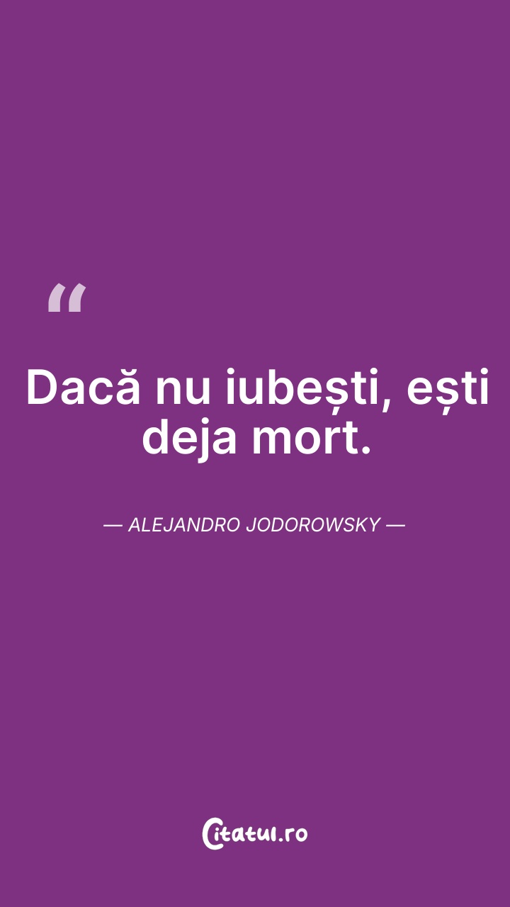 Dacă nu iubești, ești deja mort. Alejandro Jo ... Citește tot citatul >
