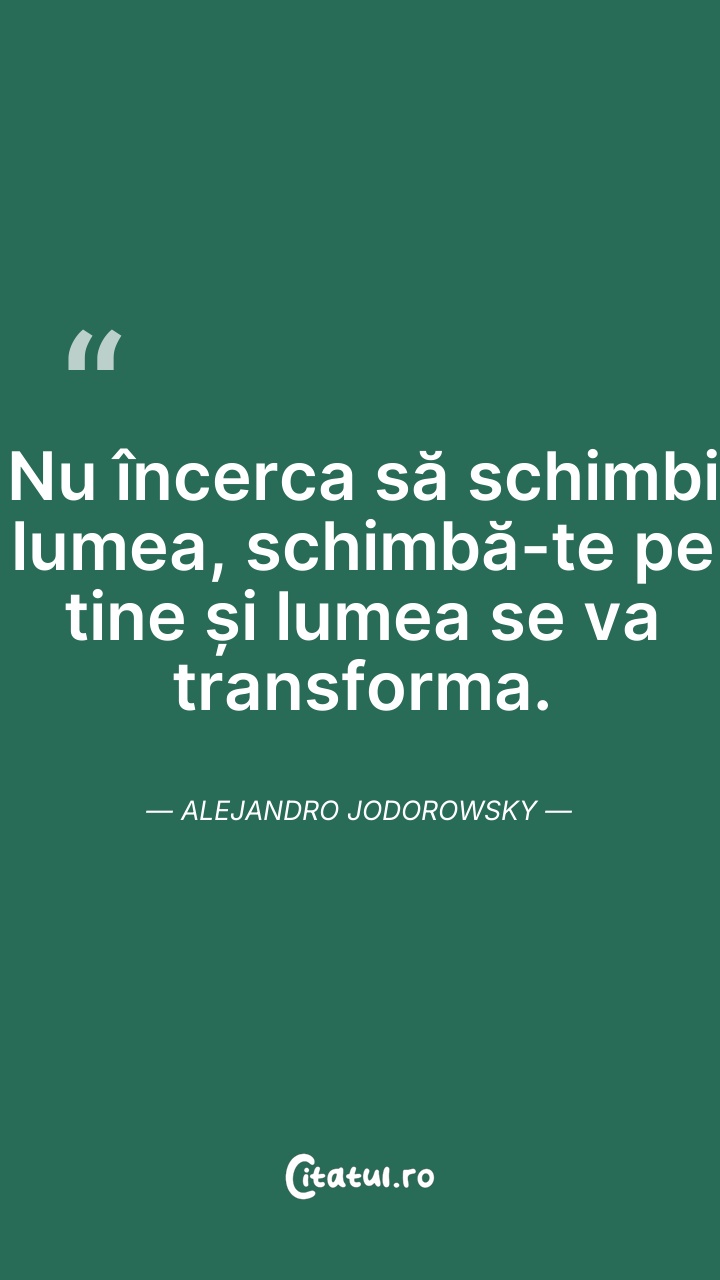 Nu încerca să schimbi lumea, schimbă-te pe ti ... Citește tot citatul >