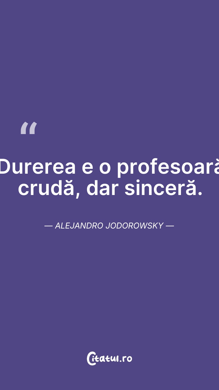 Durerea e o profesoară crudă, dar sinceră. Al ... Citește tot citatul >
