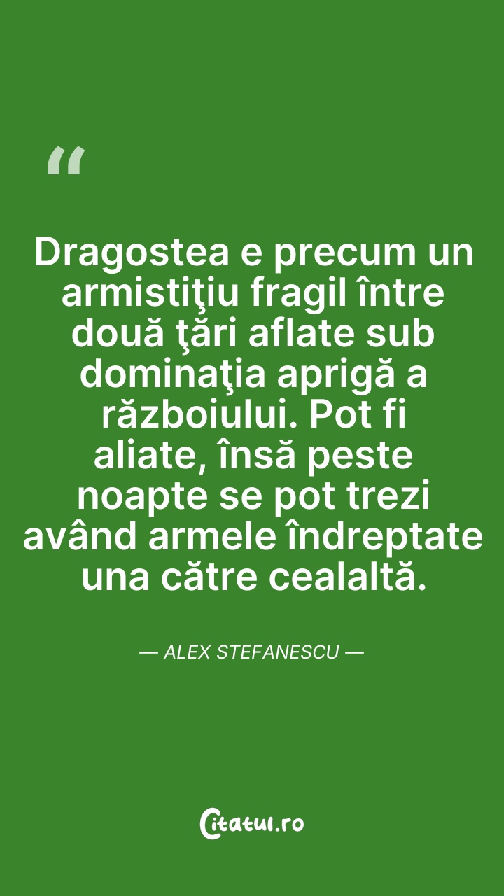 Dragostea e precum un armistiţiu fragil între ... Citește tot citatul >