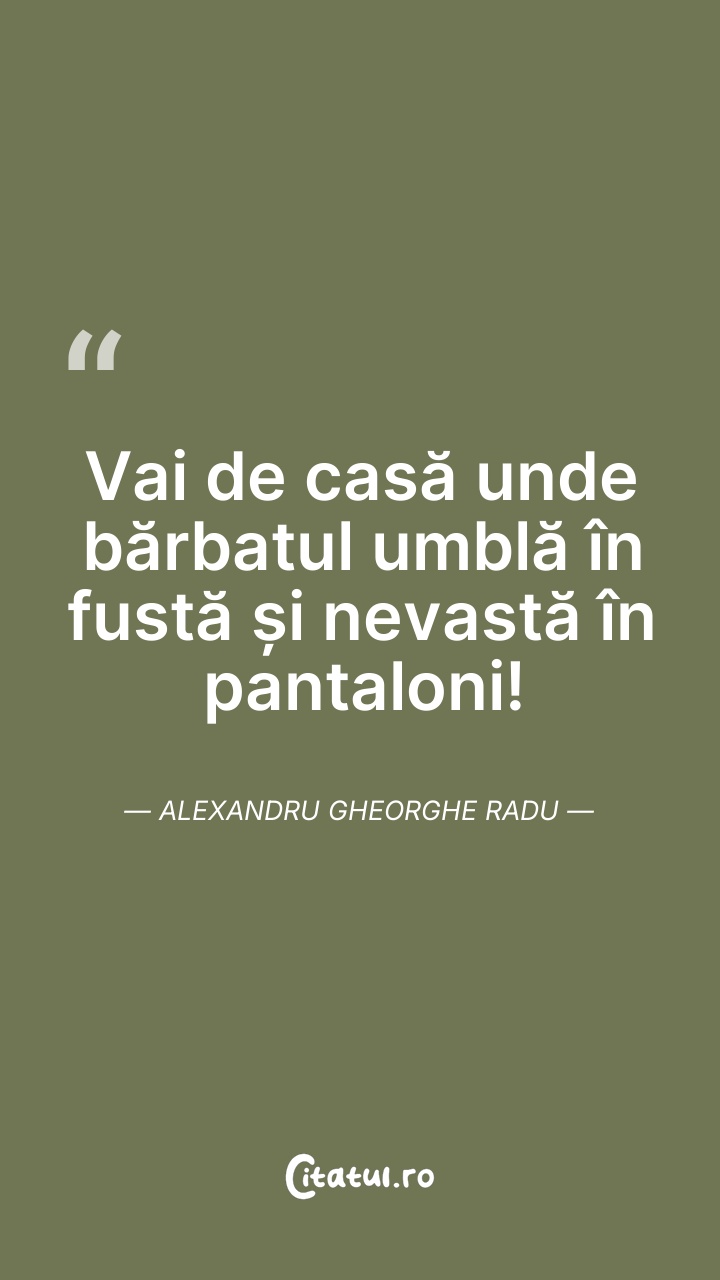 Vai de casă unde bărbatul umblă în fustă și n ... Citește tot citatul >