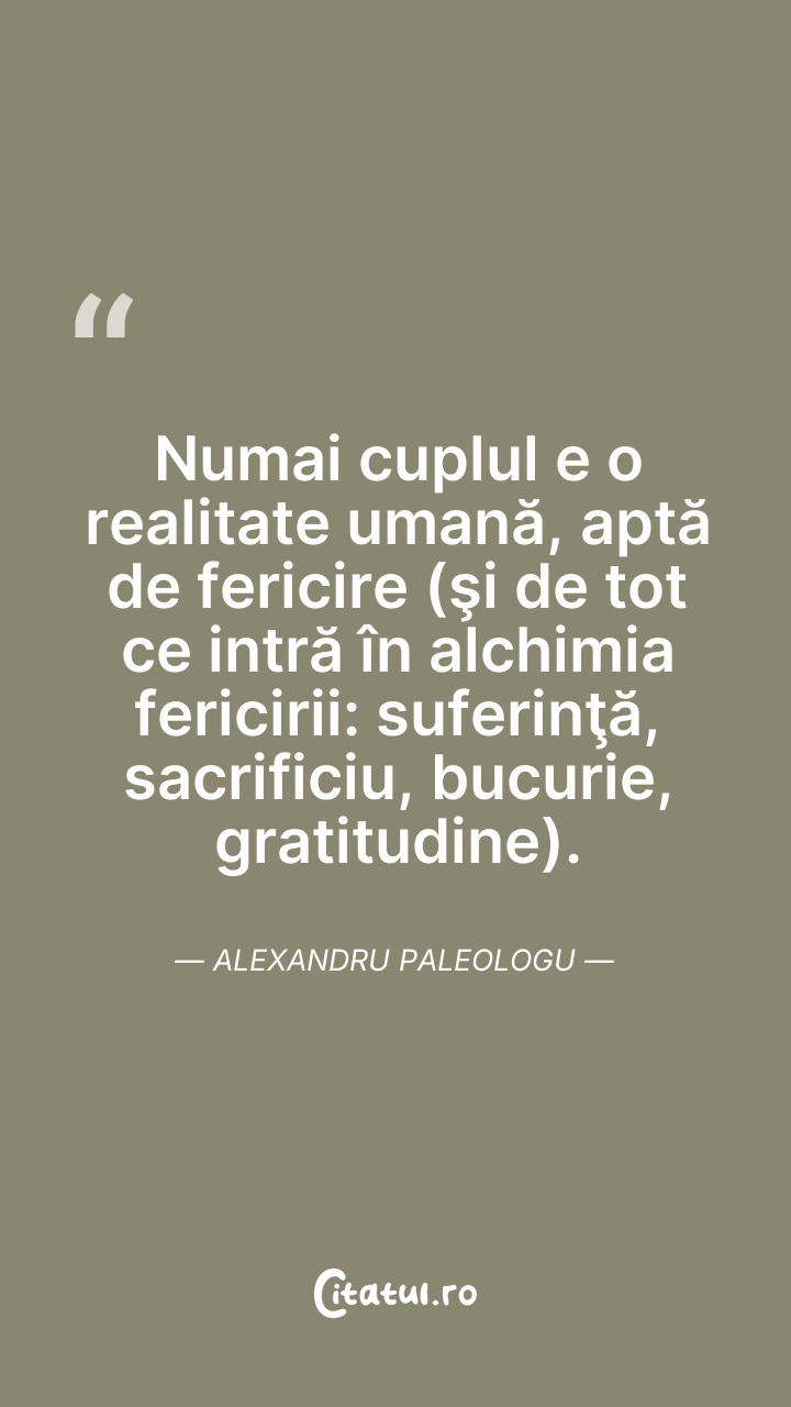 Numai cuplul e o realitate umană, aptă de fer ... Citește tot citatul >