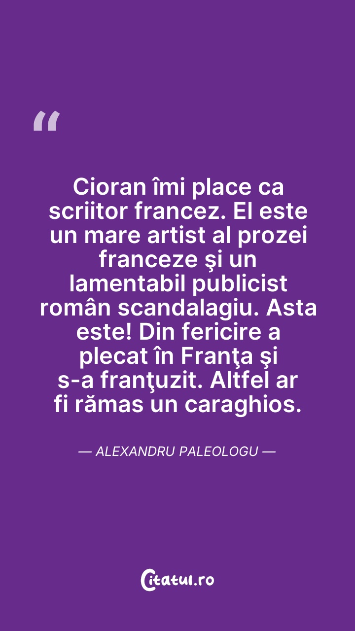 Cioran îmi place ca scriitor francez. El este ... Citește tot citatul >