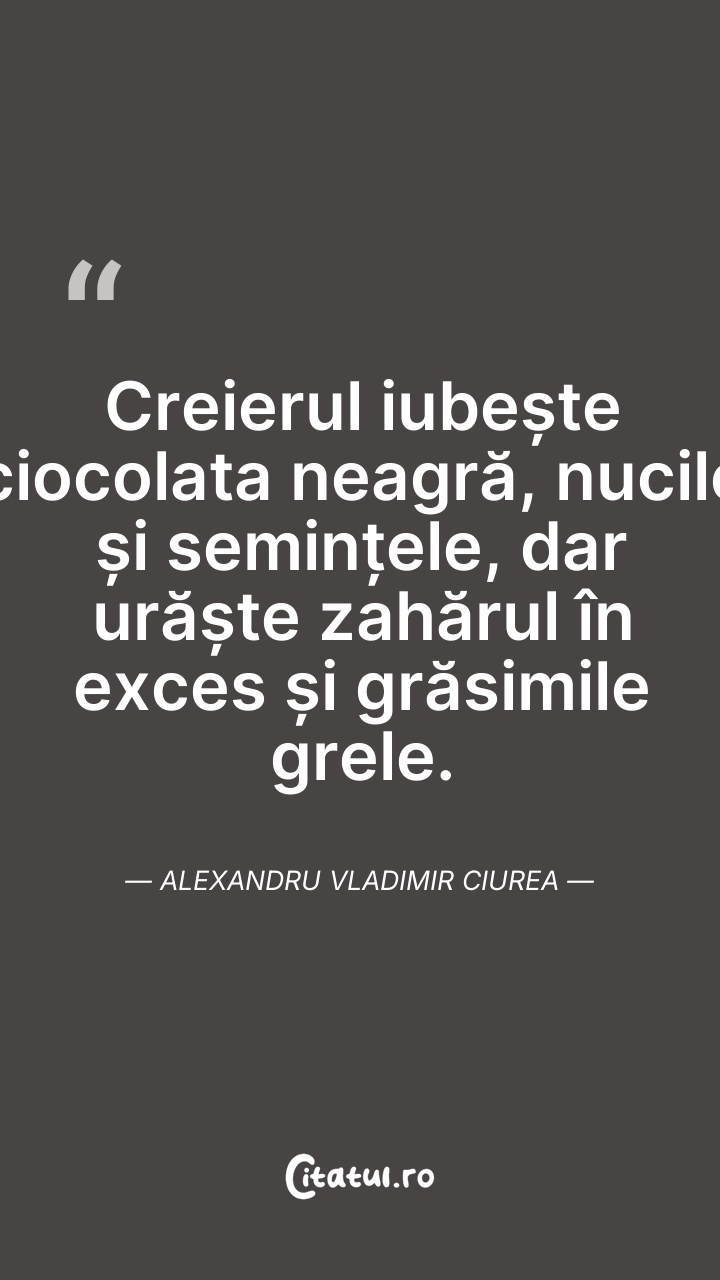 Creierul iubește ciocolata neagră, nucile și ... Citește tot citatul >