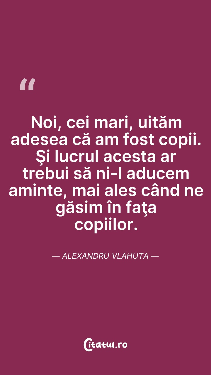 Noi, cei mari, uitam adesea ca am fost copii. ... Citește tot citatul >