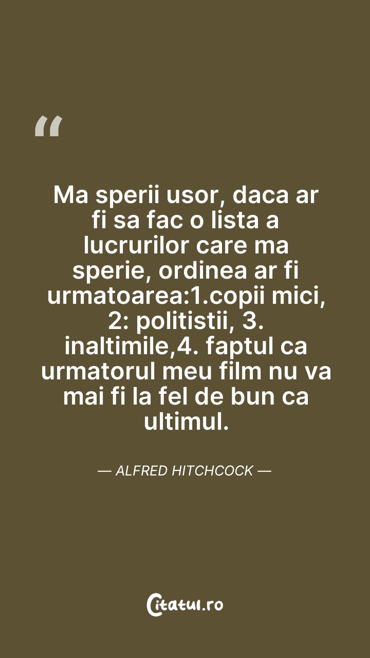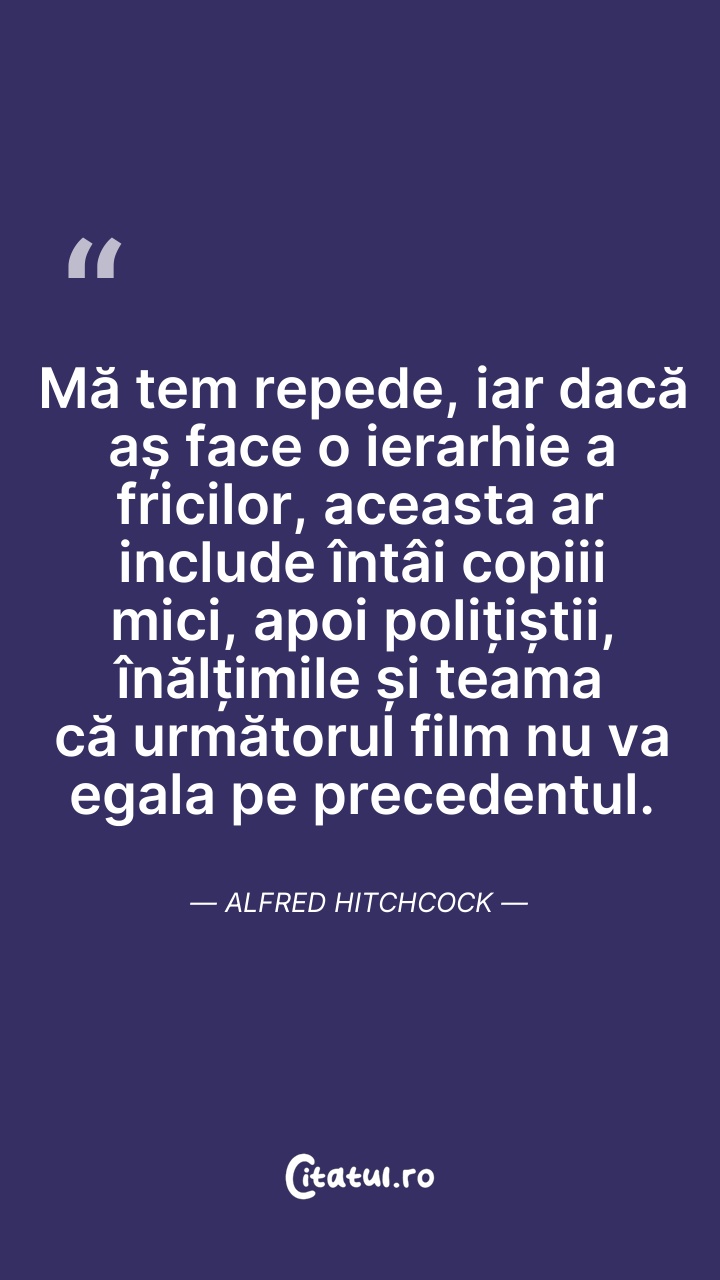Sir Alfred Joseph Hitchcock KBE a fost un regizor și producător de film. A regizat mai mult de 50 de filme trecând prin toate erele cinematografiei. Este considerat unul dintre regizorii cu cea mai mare influență asupra posterității.