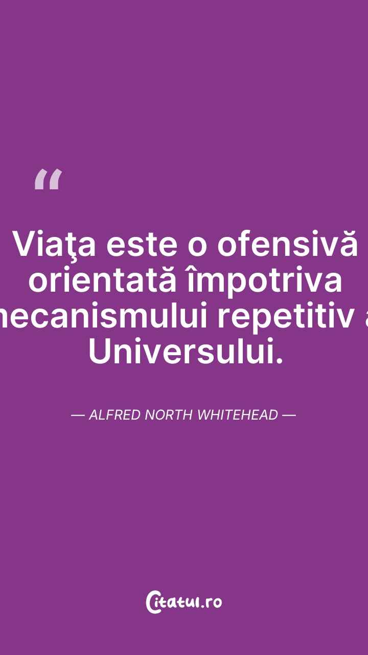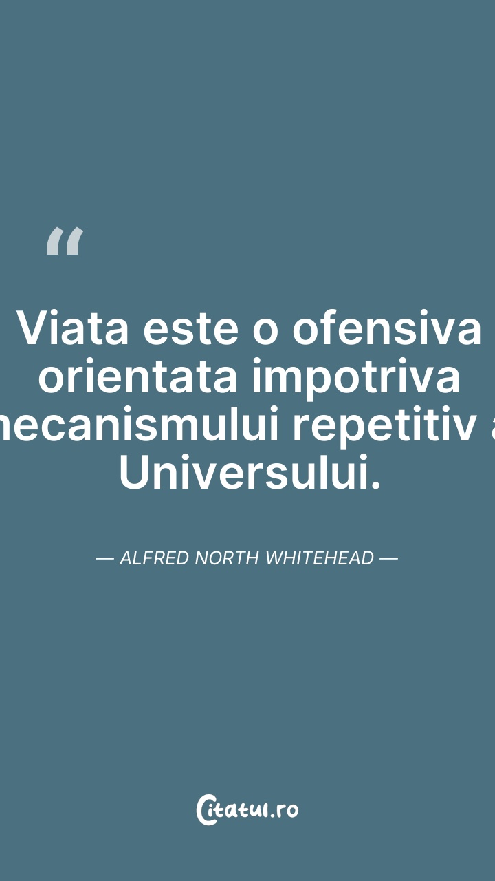 Alfred North Whitehead a fost un matematician și filozof britanic. A rămas cunoscut ca fiind figura marcantă a școlii filosofice cunoscute sub numele de filosofia procesului, care în zilele noastre și-a găsit aplicații într-o gamă largă de discipline, cum ar fi ecologia, teologia, educație, fizică, biologie, economie și psihologie.