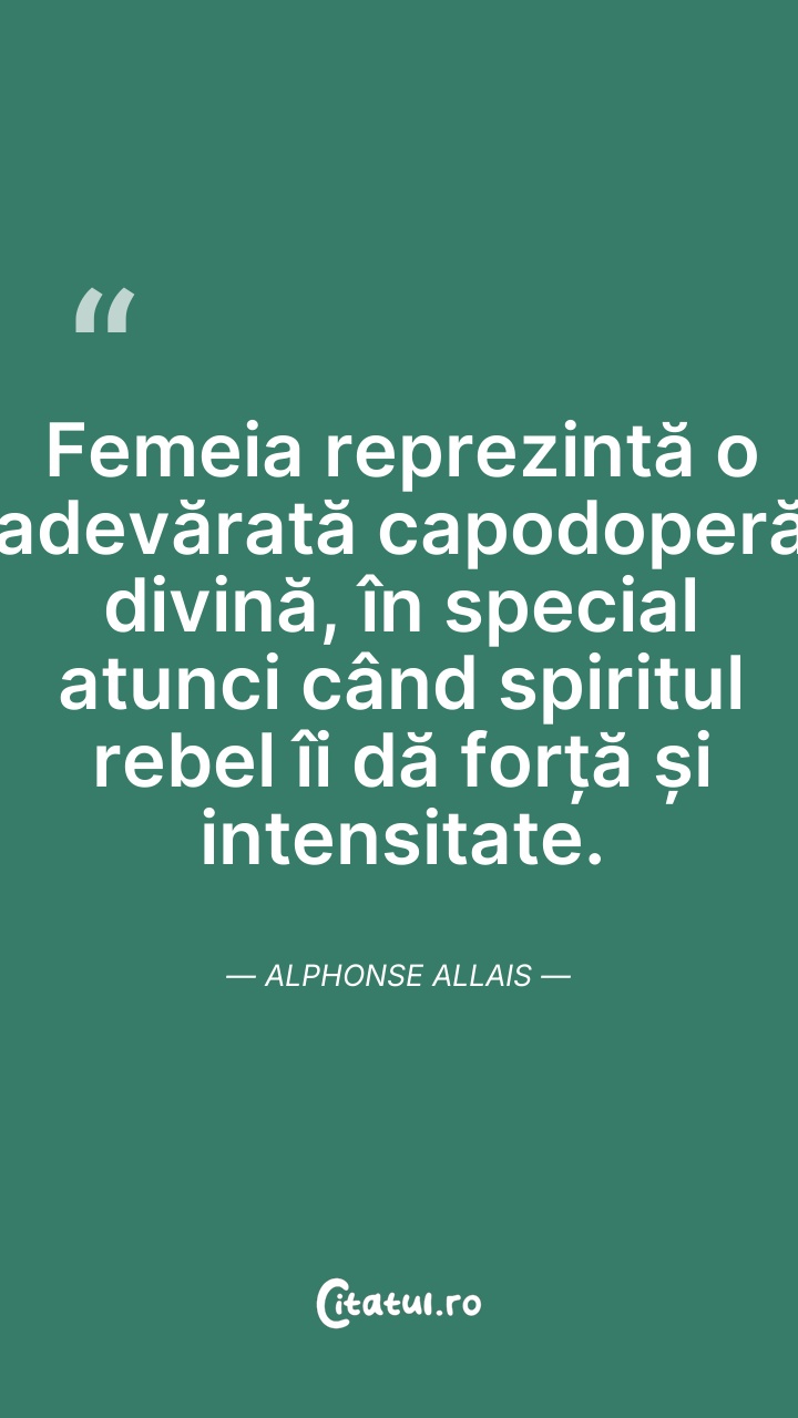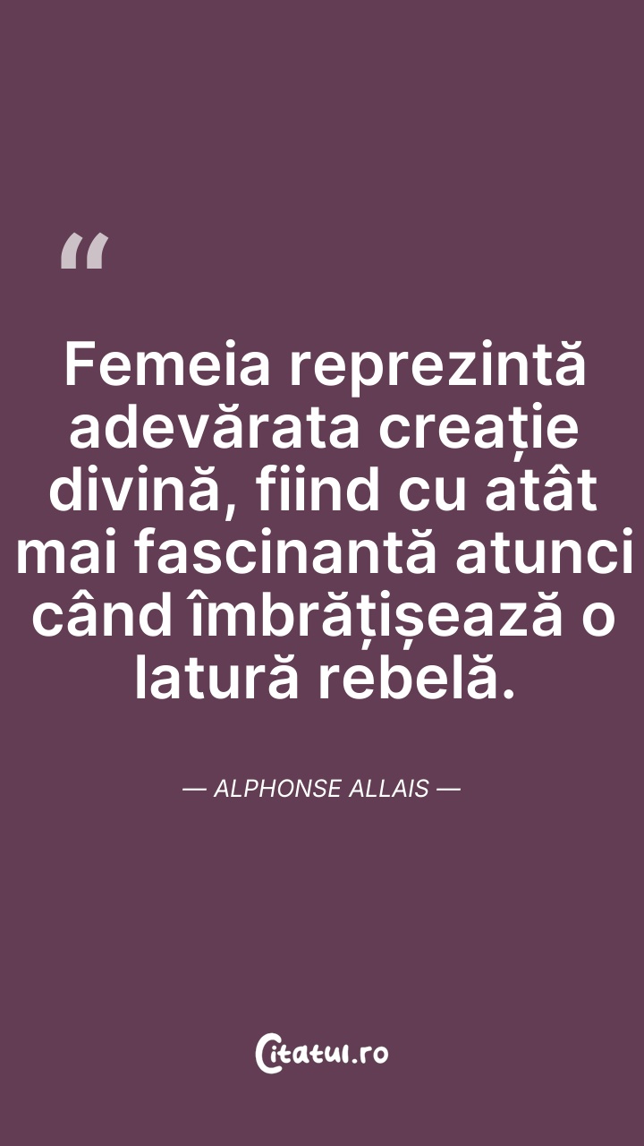 Femeia reprezintă cea mai frumoasă creație di ... Citește tot citatul >