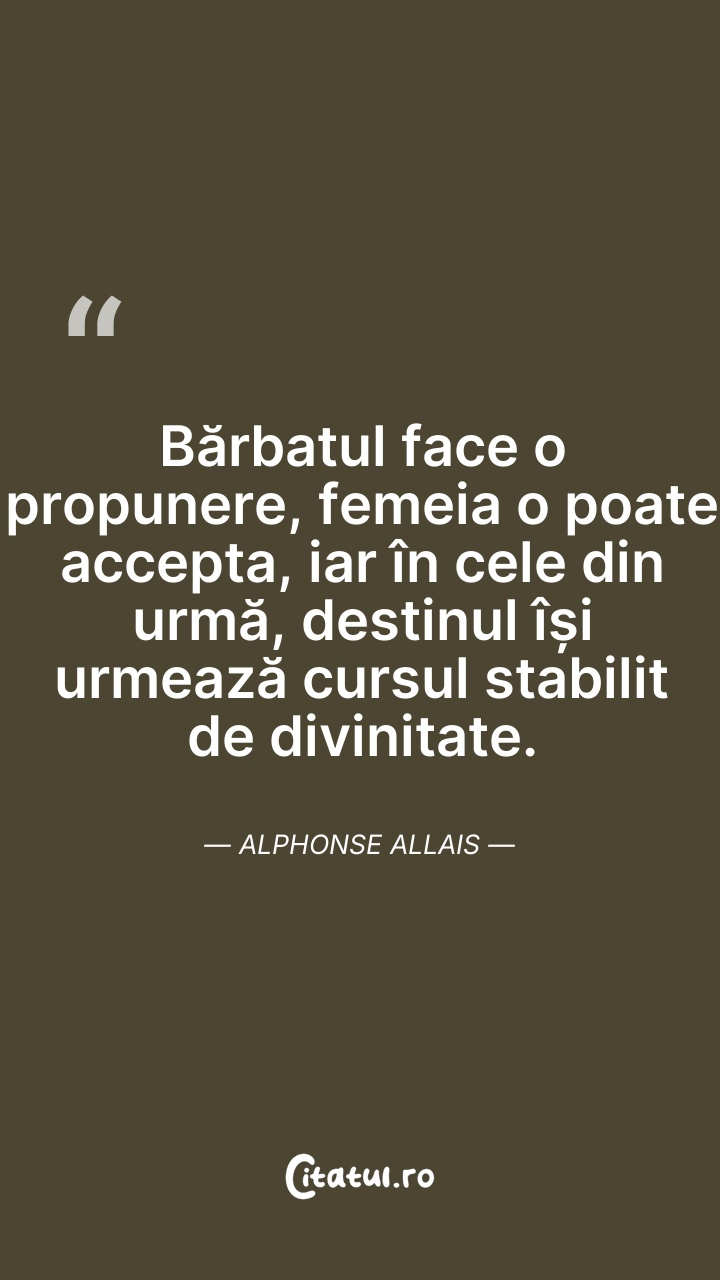 Bărbatul face o propunere, femeia o poate acc ... Citește tot citatul >