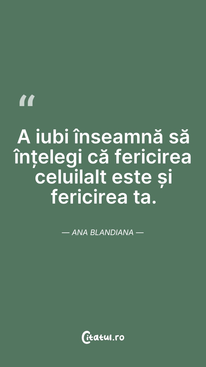 A iubi înseamnă să înțelegi că fericirea celu ... Citește tot citatul >