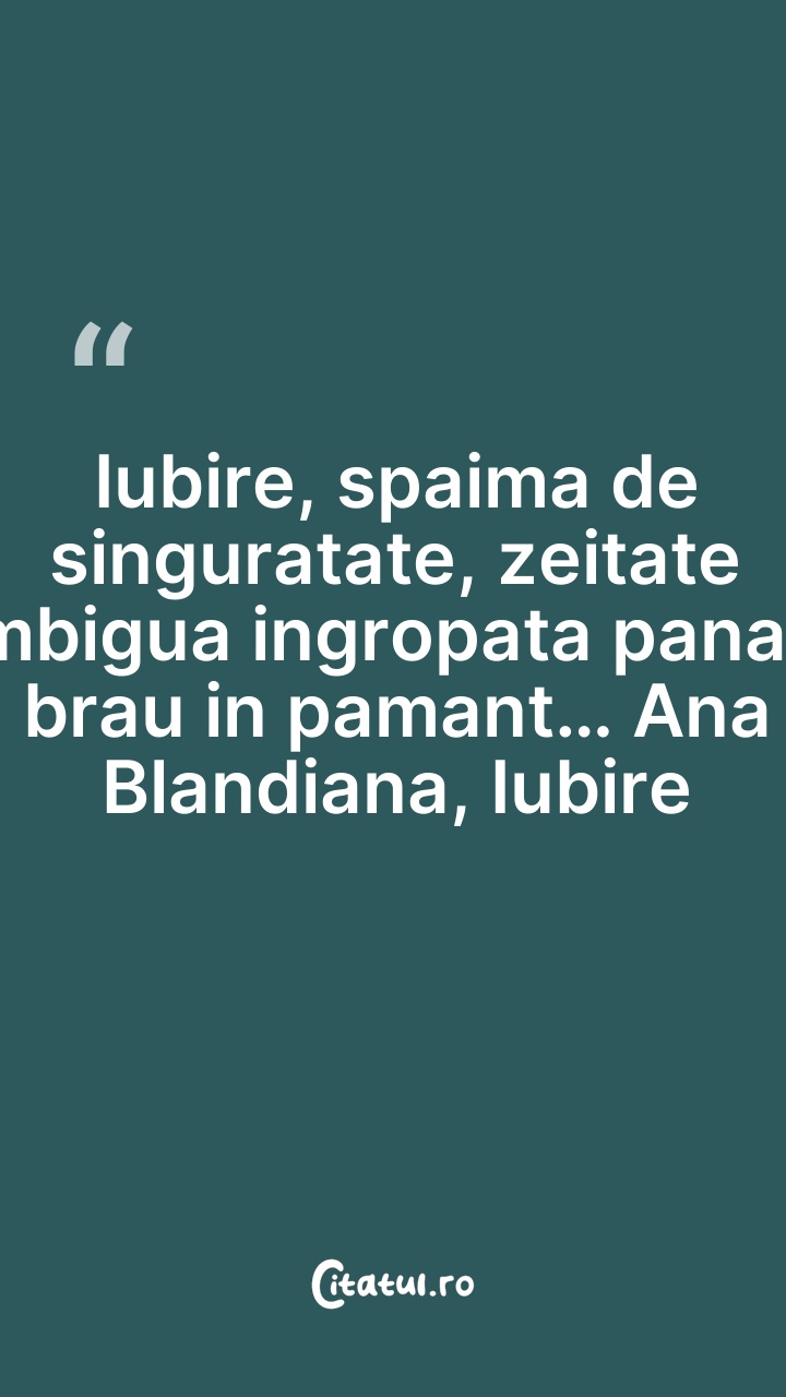 Iubire, spaima de singuratate, zeitate ambigu ... Citește tot citatul >