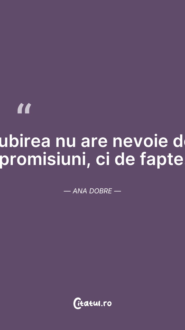 Iubirea nu are nevoie de promisiuni, ci de fa ... Citește tot citatul >
