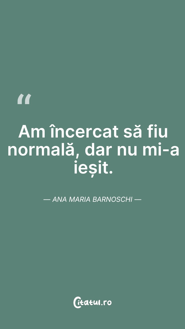 Am încercat să fiu normală, dar nu mi-a ieșit ... Citește tot citatul >