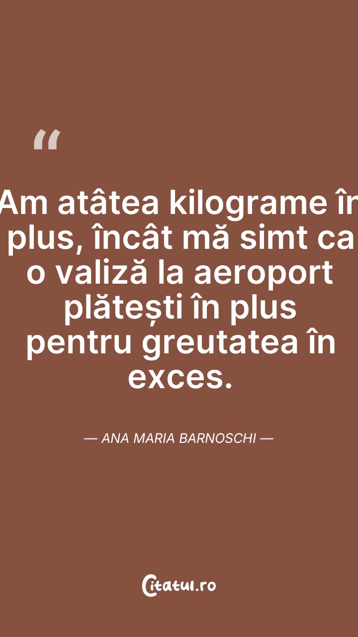Am atâtea kilograme în plus, încât mă simt ca ... Citește tot citatul >