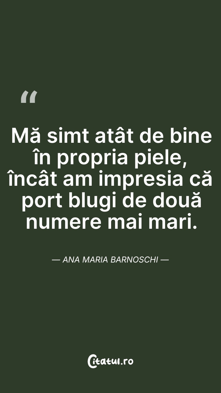 Mă simt atât de bine în propria piele, încât ... Citește tot citatul >