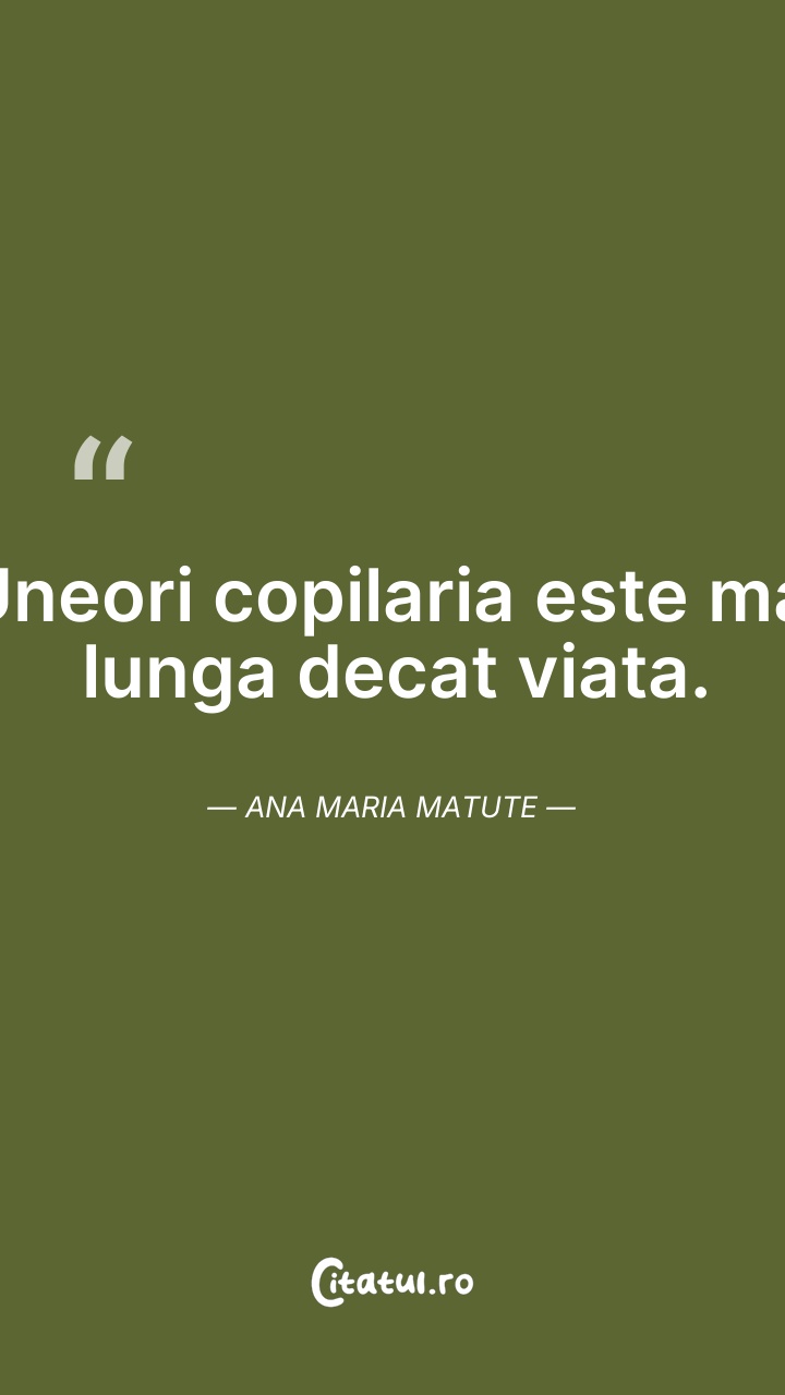 Uneori copilaria este mai lunga decat viata. ... Citește tot citatul >