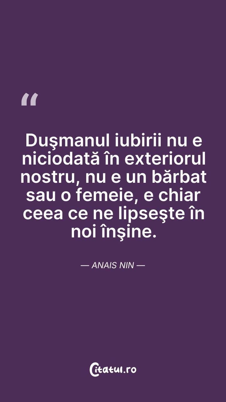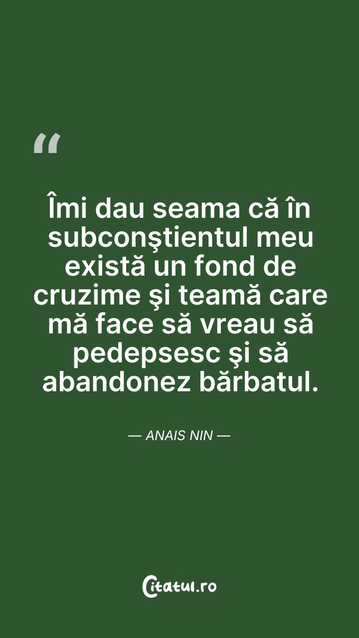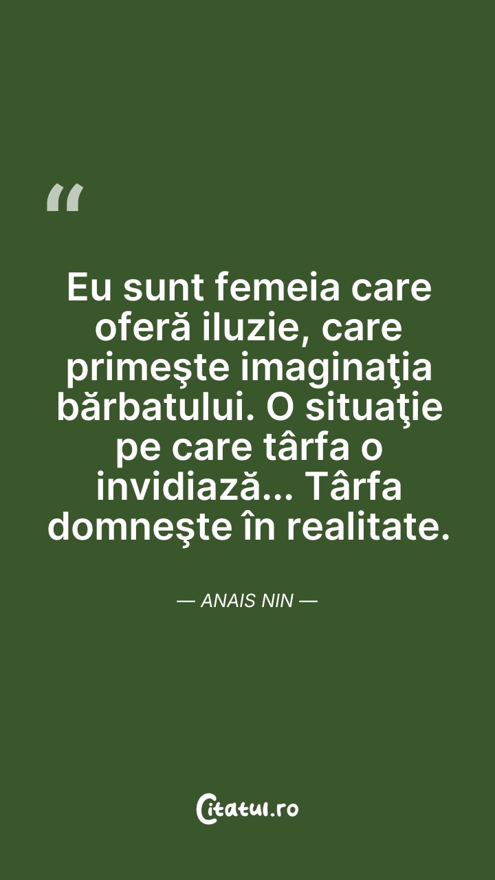 Anaïs Nin a fost o scriitoare americană de origine franceză. Este cunoscută pentru jurnalele sale intime, pe care a început să le scrie de la vârsta de 11 ani și le-a continuat, fără încetare timp de 45 de ani. Abia după moartea sa și a soțului său s-a putut publica și o variantă necenzurată a acestora.