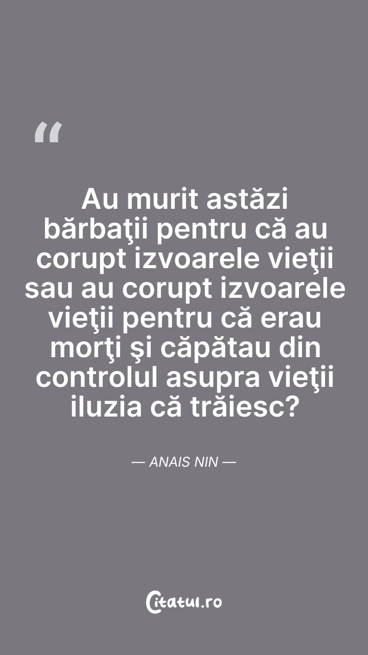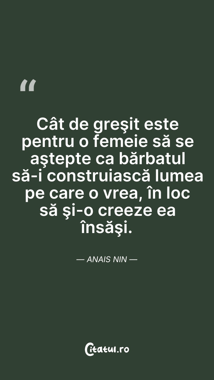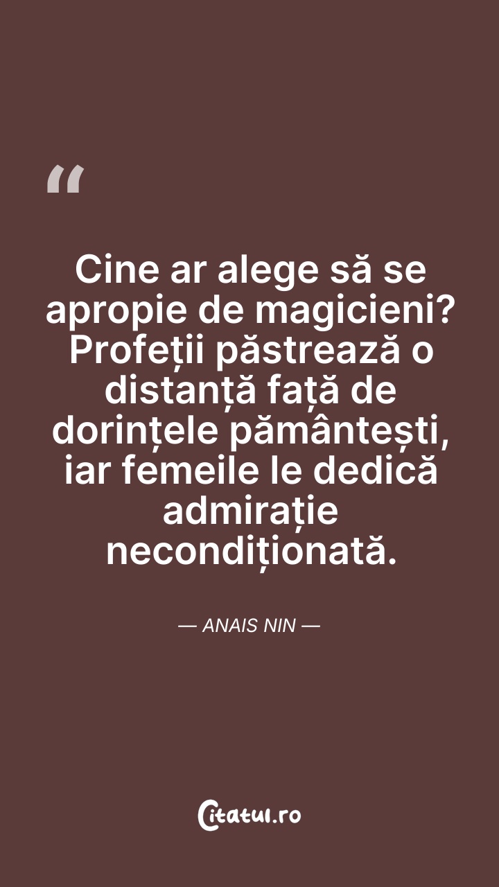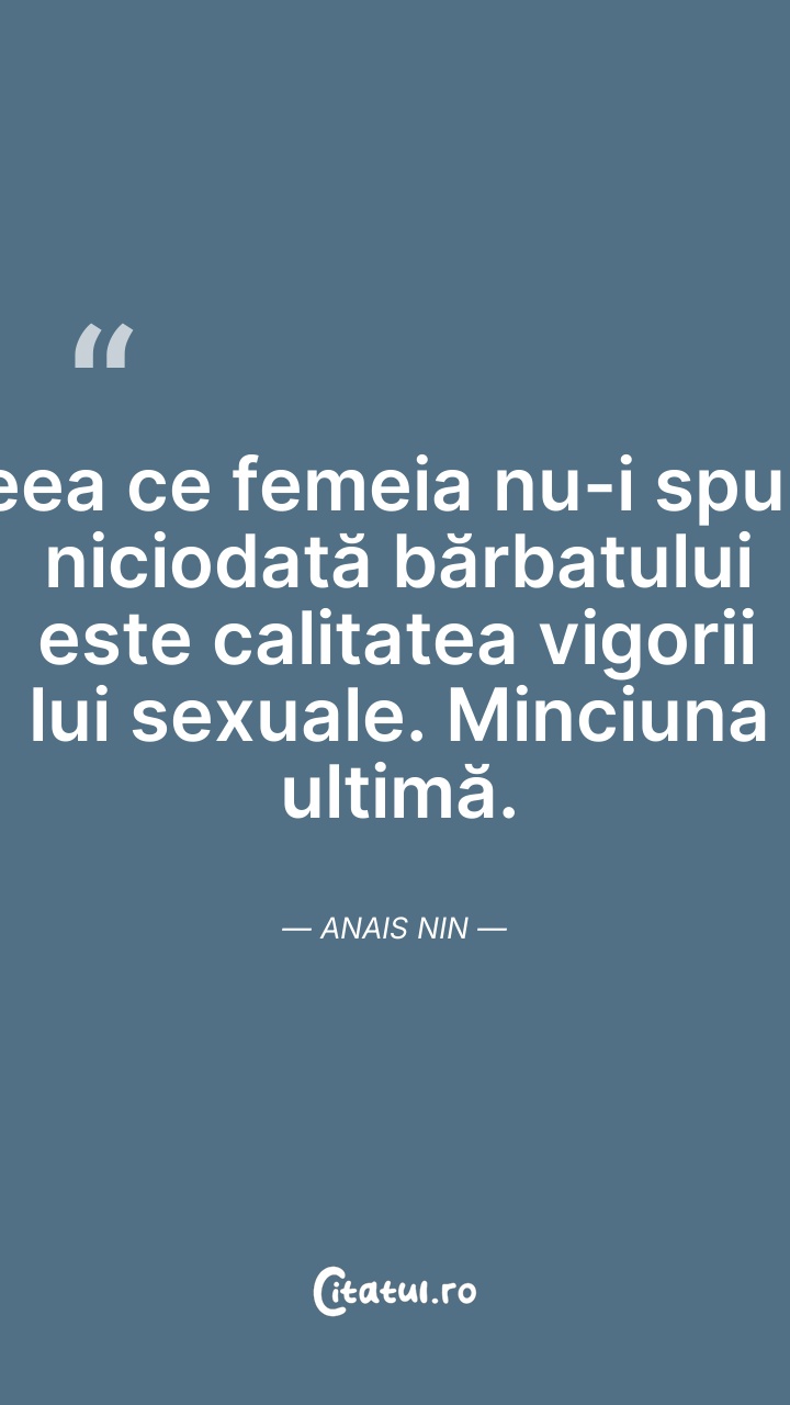 Anaïs Nin a fost o scriitoare americană de origine franceză. Este cunoscută pentru jurnalele sale intime, pe care a început să le scrie de la vârsta de 11 ani și le-a continuat, fără încetare timp de 45 de ani. Abia după moartea sa și a soțului său s-a putut publica și o variantă necenzurată a acestora.